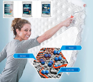 Es handelt sich um ein innovatives Pulver, das nach dem Auflösen in Wasser zur Imprägnierung von Wänden verwendet wird. Die imprägnierte Oberfläche bietet nach dem Trocknen wirksamen Schutz vor schädlichen elektrischen Wechselfeldern (bis ca. 100 kHz), die von elektrischen Anlagen – sowohl innen als auch außen (aus dem Stromnetz) – ausgehen. Die Wirksamkeit wurde durch Messungen der elektrischen Feldstärke vor und nach der Imprägnierung bestätigt. Die Untersuchungen haben eine positive Auswirkung dieser Reduzierung auf lebende Organismen gezeigt, darunter eine Verbesserung der Spermienbeweglichkeit, eine Verringerung der Anzahl fehlerhafter Karottensämlinge um durchschnittlich 50 % sowie ein beschleunigtes Wachstum. Ein ähnlicher Abschirmungseffekt wurde beim Wachstum von Zwergbohnen beobachtet.